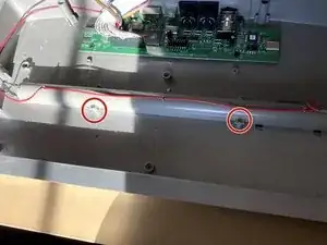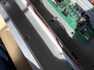 Удалите два латунных винта, которые ближе к передней части клавиатуры.