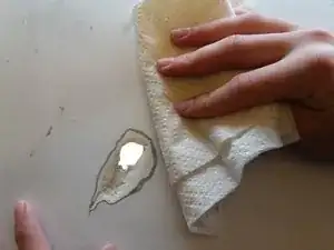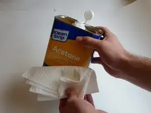Используйте ацетон и бумажное полотенце, чтобы очистить обе стороны отверстия и обязательно удалить любую грязь с поверхности.