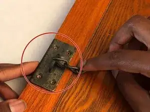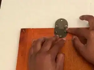 Используйте отвёртку Phillips #2, чтобы вкрутить три деревянных шурупа Phillips #5 (15 мм) и закрепить полусферические петли на основном каркасе стола.