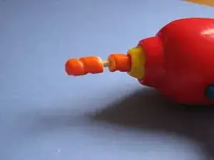 Вставьте другой конец деревянного цилиндра в другой конец пластиковой игрушки.
