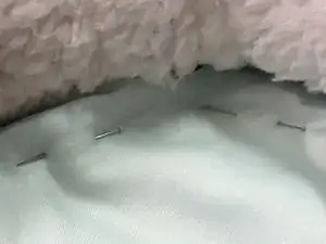 Убедитесь, что ткань полностью закрывает сторону подушки лежанки. Затем закрепите один угол ткани булавкой к лежанке.