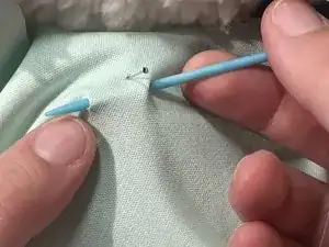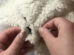 Иглой и ниткой свободно зашейте отверстие или разрыв.