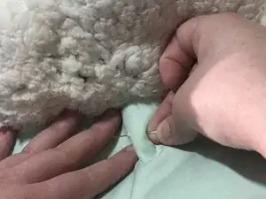 Ручными стежками пришейте по всей длине ту часть ткани, которая приколота к лежанке. Старайтесь делать стежки одинакового размера и равномерно расположенными. Цель — добиться максимально аккуратного внешнего вида швов.