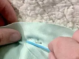 Для выполнения ремонта потребуется игла и нитка. Рекомендуется освежить базовые навыки шитья перед началом, так как процедура в этом руководстве не является исчерпывающей.