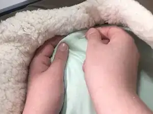 Разложите новый кусок ткани ровно на столе и поместите на него лежанку.