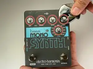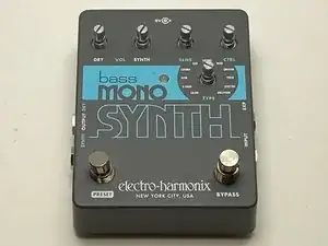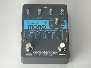 Если ваш эффект-педаль Electro-Harmonix Bass Mono Synth передаёт искажённый звук или вовсе не воспроизводит звук, это руководство поможет вам найти и устранить проблему. Частая причина — отслоившаяся точка пайки на материнской плате. Решение — припаяйте провода обратно.