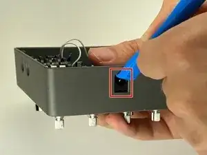 С помощью монтажного инструмента нажмите или подденьте разъём питания 9V, чтобы освободить его из корпуса.