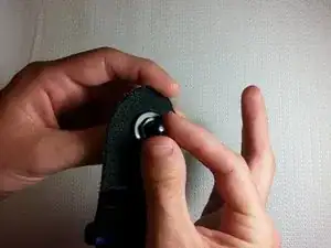 Чтобы разобрать фиксатор ремня, возьмите чёрный шаровой колпачок и поверните его против часовой стрелки.