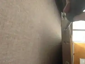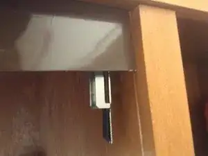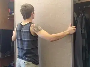 Удалите винт в верхней правой части дверцы шкафа, который не работает должным образом. Используйте крестообразную отвертку и вращайте винт против часовой стрелки, пока он не выпадет. При необходимости используйте стремянку, если не можете дотянуться.