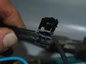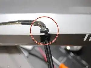 Снимите зажим шнура HEYCO с крышки, используя малые клещи с регулировкой и отвёртку. Нужно одновременно нажать на три защёлки. Затем подденьте и откройте его, чтобы извлечь провод.