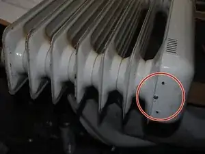 Мне потребовалось время, чтобы понять, как попасть в область проводки под этой крышкой. Ничего не делайте с пластиковой наружной крышкой. Внизу обогревателя есть пластиковая ножка, закреплённая двумя саморезами по металлу. Удалите их, чтобы получить доступ к одному саморезу по металлу, который удерживает крышку.
