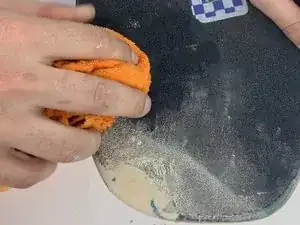 Чтобы очистить доску от оставшейся шлифовальной пыли, смочите тряпку мылом и водой.