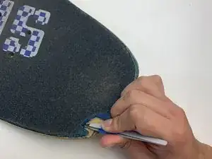 С помощью ножа X-Acto или лезвия срежьте излишки гриптейпа, которые не приклеились к доске.