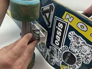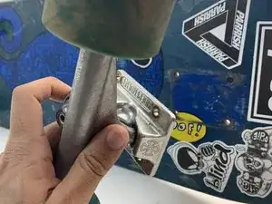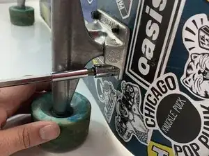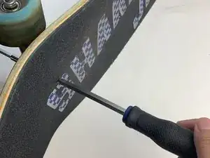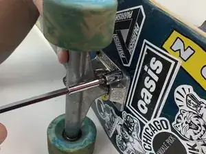 Отверните верхний винт от деки с помощью отвертки Phillips №2, придерживая соответствующую гайку на подвеске.