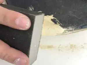 Равномерно отшлифуйте излишки шпатлевки с помощью шлифовальной губки, чтобы придать ей форму доски.