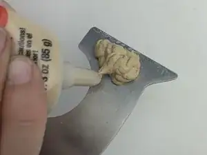 Нанесите обильное количество шпатлевки по дереву на шпатель.