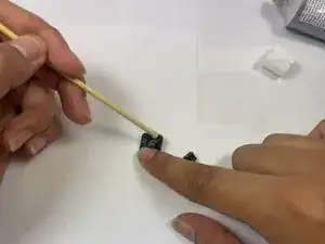 С помощью деревянной зубочистки набрать каплю клея промышленной прочности E6000 и нанести её на сломанную деталь.
