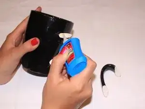 Когда ручка высохла и закреплена, начните наносить клей на чашку в местах, где должна крепиться ручка.
