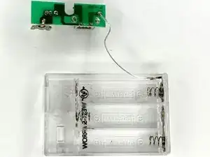На плате подключён провод, идущий к разъёму батареек. Используйте лопатку или отвёртку, чтобы поддеть плату и извлечь её из корпуса. Отложите плату в сторону, сохранив целостность провода.