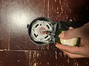 Нанесите машинное масло на заржавевшие части, стараясь наносить его вокруг, но не внутрь, ротора вентилятора.