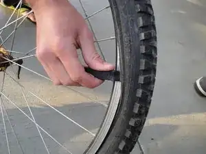 При наличии нескольких шинных ключей попробуйте зафиксировать первый ключ на спице, чтобы он остался на своём месте. Затем вставьте второй ключ на расстоянии нескольких дюймов и также зафиксируйте его на спице. Следующим вставьте третий ключ ещё дальше, затем удалите второй и вставьте его ещё на несколько дюймов вперёд. Продолжайте таким образом, пока покрышка не выйдет из-под обода.