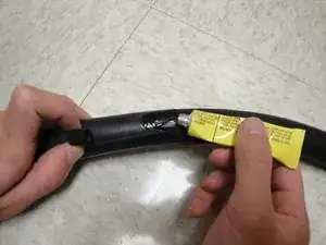 Надавливайте на заплатку до полного высыхания резинового клея.