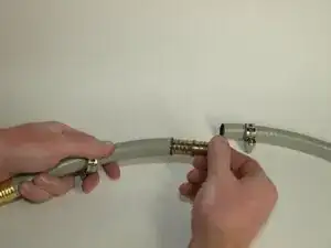 Это простой и недорогой ремонт, который может выполнить любой. Две наиболее важные вещи в этом руководстве — убедиться, что шланг полностью охватывает латунную муфту, и проверить, что хомуты достаточно затянуты.