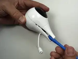 Поместите конец открывалки между швами передней и задней частей камеры и проведите по периметру, чтобы освободить зажимы, соединяющие их.