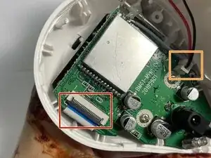 Будьте осторожны, чтобы не оторвать или не отключить материнскую плату полностью - она все еще присоединена к двум припаянным кабелям.