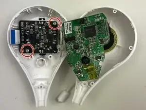 Удалите два винта длиной 6,35 мм с шлицем #0, которые удерживают камеру в корпусе.