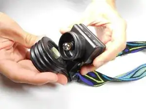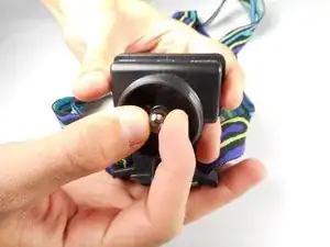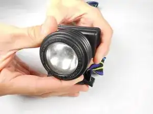 Нажмите линзовый элемент на передней стороне корпуса батареи.