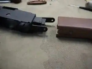 Вставьте внутренний ствол в корпус внешнего ствола. Также поместите маленькую пружину обратно в паз справа, под задним прицелом.