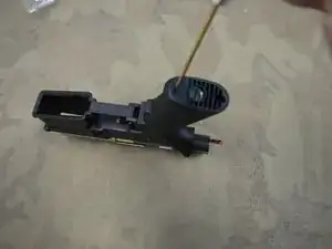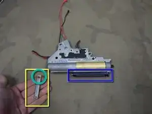 Теперь можно установить мотор в рукоятку. Убедитесь, что пружина присоединена к передней части мотора.