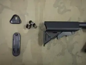 Для этого потяните вниз на рычаг регулировки приклада.