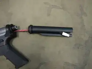 Не защемляя провода, выходящие из задней части трубки-буфера, наденьте приклад обратно.