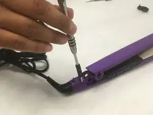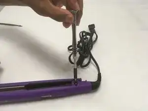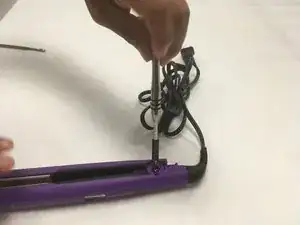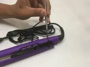 Поместите инструмент для поддевания между выпрямителем для волос и выравнивающей крышкой.