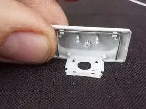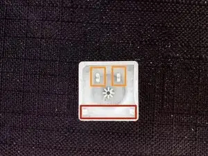 Красная область — задняя часть клавиши, а оранжевые защёлки — точки соединения клавиши с ранее отмеченными ножничными держателями.