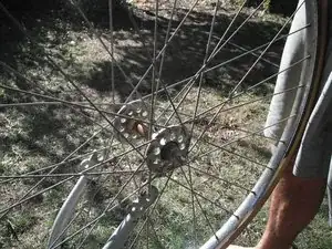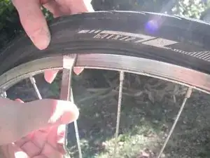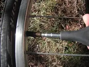 Зафиксируйте монтажную лопатку на спице с помощью выемки на противоположном конце лопатки.