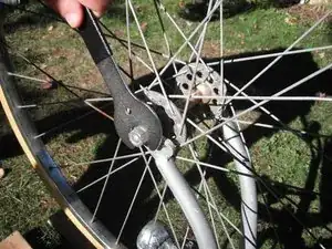 Поднимите колесо вверх из вилки.