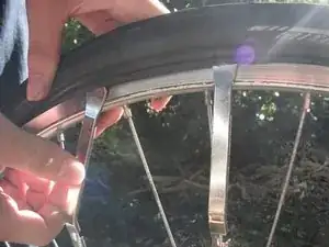 Повторите с третьей монтажной лопаткой дальше по окружности шины.