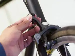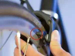 Сделайте колодки равноудаленными от обода, отрегулировав маленький болт сверху суппорта шестигранным ключом 3 мм.