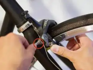 Если суппорт всё ещё зажат, ослабьте болт троса с помощью шестигранного ключа 5 мм, чтобы снять натяжение с суппорта.