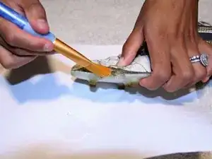 Выжмите хорошее количество клейкой массы Shoe Goo на лист бумаги для печати.