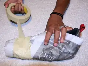 Плотно оберните клейкую ленту вокруг газеты, чтобы создать давление на разрыв до тех пор, пока клей не высохнет.