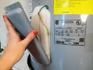 Отложите крышку панели доступа и винты. Снимите теплоизоляцию, чтобы обнажить провода, термостат и нагревательный элемент.