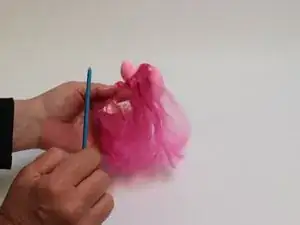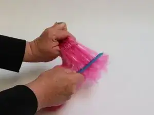 Вынимайте комок жевательной резинки из волос My Little Pony с помощью расчески с длинным хвостиком, обрабатывая небольшие участки за раз.