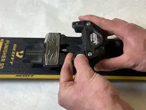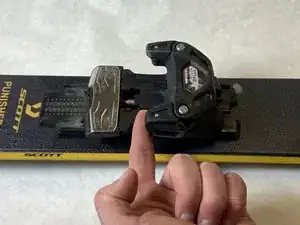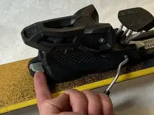 Отрегулируйте значение DIN на носочном блоке до вашего персонального значения, затягивая или ослабляя винт на боковой стороне крепления.