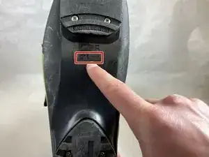 С поднятым рычагом сдвиньте носочный блок, пока метки не укажут на правильный диапазон размера ботинка.
