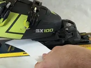 Вставьте лист бумаги между подошвой ботинка и носочной планкой.