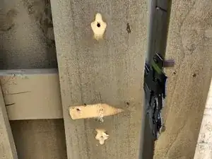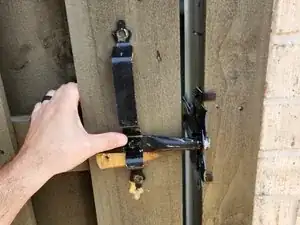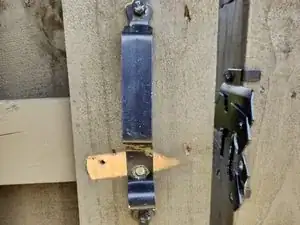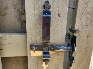 Повторите этот шаг для каждого из двух болтов, чтобы отсоединить ручку от деревянной калитки.